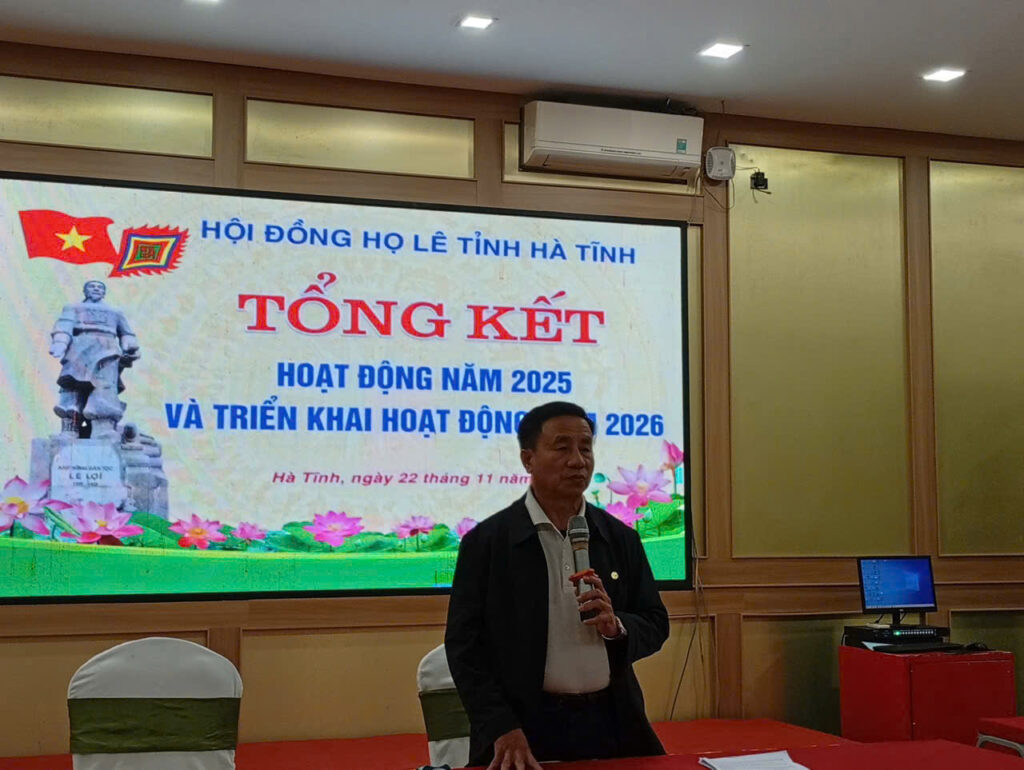 HLVN – Sáng 22/11/2025 Ban Thường vụ HĐHL tỉnh Hà Tĩnh tổ chức hội nghị tổng kết hoạt động năm 2025, triển khai hoạt động năm 2026. Hội nghị đã thông qua báo cáo, công khai thu chi quỹ… ,ý kiến phát biểu sôi nổi của các thành viên dự họp tập chung đánh giá cao kết quả hoạt động việc họ năm 2025 đẫ sâu sát cụ thể, đồng thời bàn kế hoạch nội dung việc họ dự kiến năm 2026…
