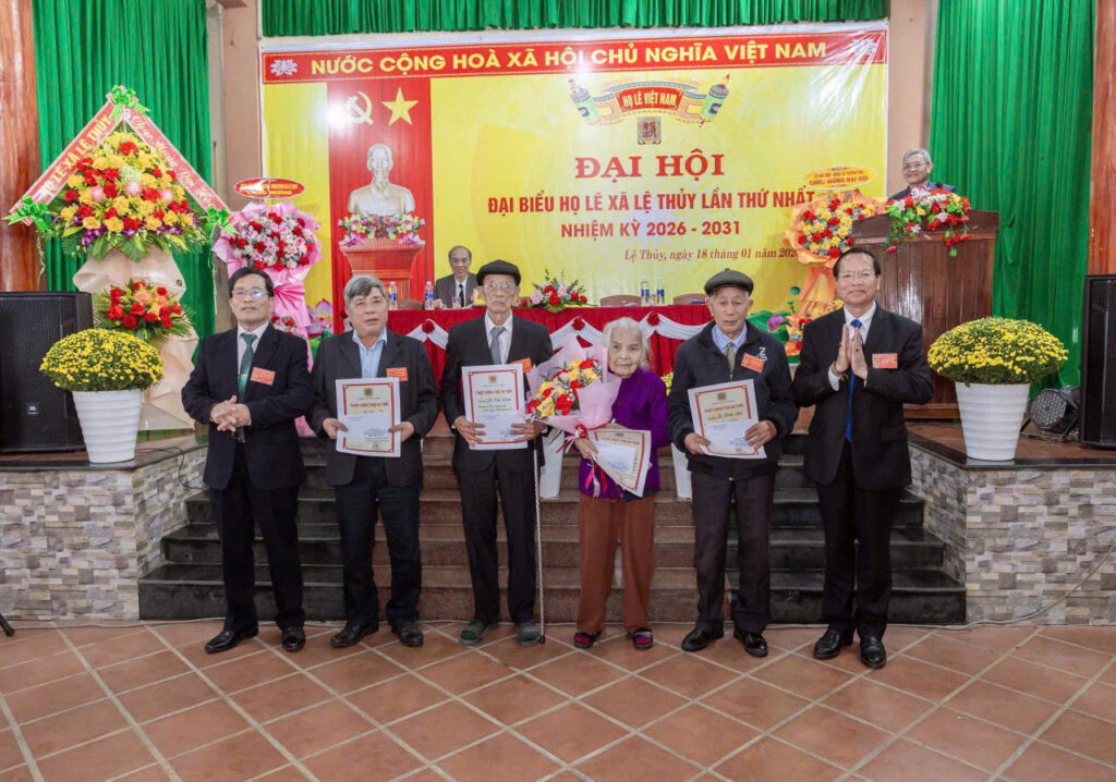 HLVN – Ngày 18/01/2026, tại Trung tâm tổ chức sự kiện Quê hương xã Lệ Thủy (xã mới được sáp nhập từ 5 xã và 1 thị trấn của huyện Lệ Thủy củ), HĐHL Quảng Bình tổ chức Đại hội Đại biểu họ Lê xã Lệ Thủy (Quảng Trị) lần thứ nhất nhiệm kỳ 2026-2031. Tham dự Đại hội có trên 150 đại biểu tiêu biểu đại diện cho 34 dòng tộc trong xã. Đại diện lãnh đạo Cấp ủy chính quyền, Mặt trận tổ quốc Việt Nam xã Lệ Thủy dự, có lẵng hoa và phát biểu chúc mừng Đại hội. Các vị trong BCH, Ban TTHĐHL Quảng Bình dự chỉ đạo.