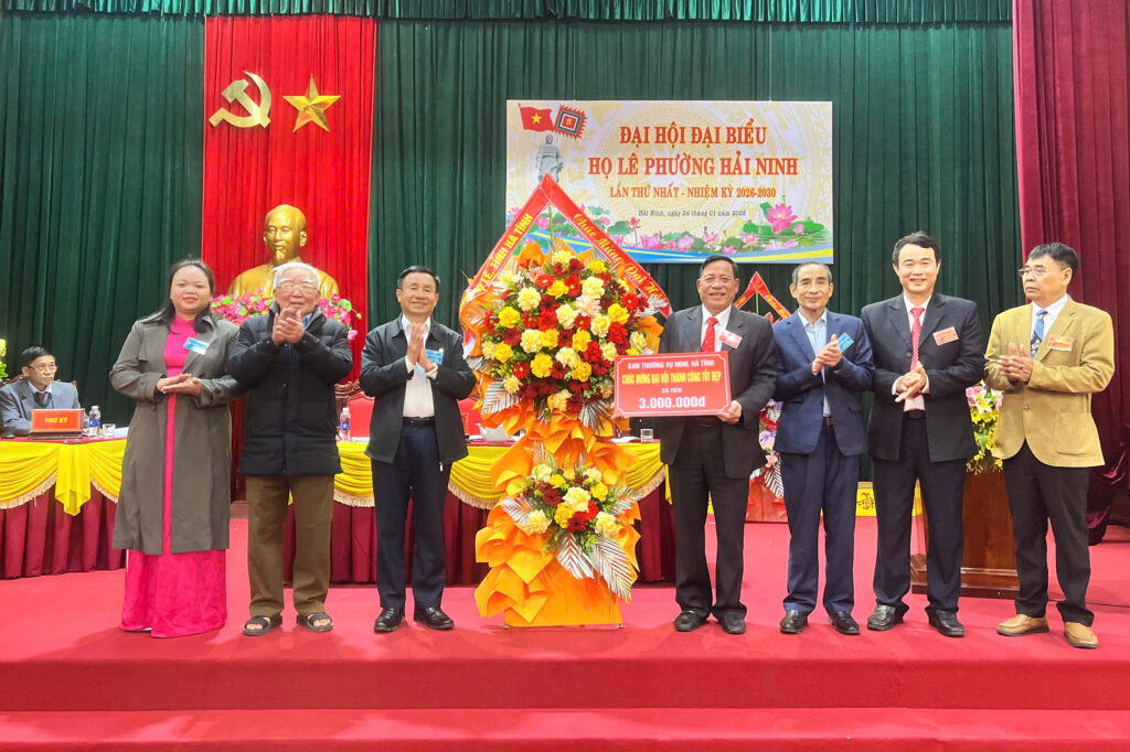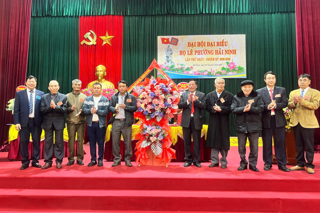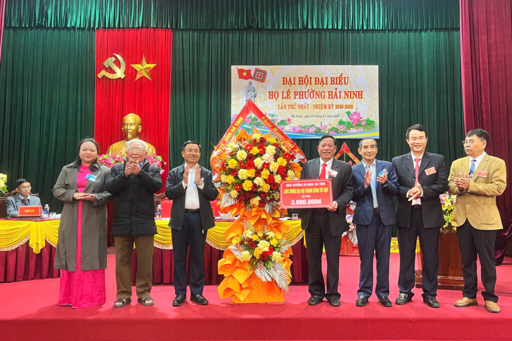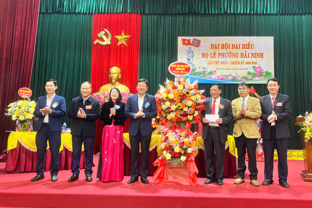 HLVN – Chiều ngày 24/1, tại hội trường UBND phường Hải Ninh, tỉnh Hà Tĩnh, Đại hội Họ Lê phường Hải Ninh lần thứ nhất, nhiệm kỳ 2026–2030 đã thành công tốt đẹp. Đại hội được tổ chức trang trọng với sự tham dự đông đủ của đại diện các dòng Họ Lê trên địa bàn phường. Dự đại hội có ông Lê Đình Sơn, nguyên Ủy viên Ban Chấp hành Trung ương Đảng, nguyên Bí thư Tỉnh ủy Hà Tĩnh, Chủ tịch Họ Lê Hà Tĩnh; ông Lê Xuân Khánh, Phó Chủ tịch Họ Lê Hà Tĩnh. Về phía địa phương có ông Nguyễn Huy Trọng, Bí thư Đảng ủy, Chủ tịch HĐND phường Hải Ninh.