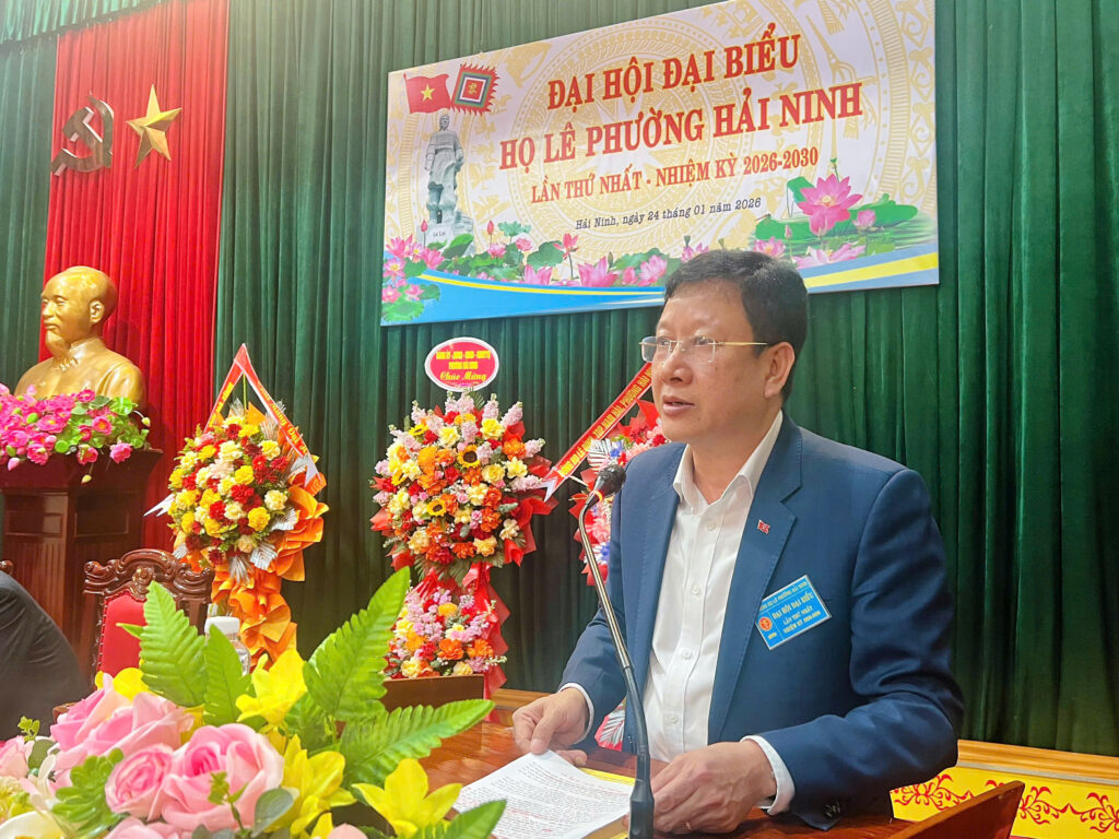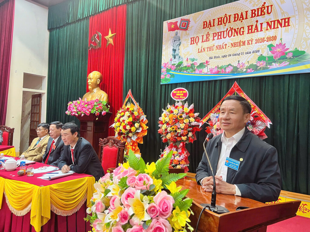 Phát biểu tại đại hội, ông Lê Đình Sơn, Chủ tịch Họ Lê Hà Tĩnh nhấn mạnh: việc tổ chức Đại hội Họ Lê phường Hải Ninh lần thứ nhất có ý nghĩa quan trọng, góp phần củng cố tổ chức dòng họ, giữ gìn gia phong, phát huy truyền thống hiếu học, nghĩa tình của Họ Lê. Ông đề nghị Ban chấp hành nhiệm kỳ 2026–2030 chú trọng công tác khuyến học, khuyến tài, chăm lo đời sống tinh thần cho con cháu, đồng thời gắn kết chặt chẽ hoạt động dòng họ với phong trào xây dựng nông thôn mới, đô thị văn minh tại địa phương.