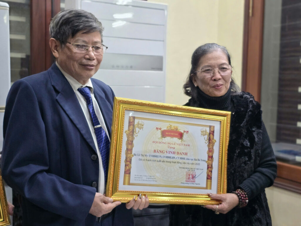 Trong năm 2025, 3 cá nhân có những đóng góp tiêu biểu của HĐHL Hà Nội đã được Hội đồng Họ Lê Việt Nam vinh danh và khen thưởng gồm: 1. Ông Lê Văn Bốn – Phó Chủ tịch Kiêm Chánh Văn phòng HĐHL Hà Nội 2. Ông Lê Tiến Khóa – Phó Chủ tịch HĐHL Hà Nội phụ trách Khuyến Học Khuyến Tài 3. Bà Lê Thị My UV BCH HĐHL Hà Nội, phụ trách khu vực Hai Bà Trưng. Các đại biểu cùng chia sẻ tâm thức và nỗ lực hướng tới các hoạt động cụ thể, hiệu quả kết nối dòng tộc trong năm 2026.