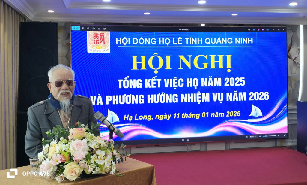 HLVN – Sáng 11/1/2026, tại nhà hàng Sen Granden HĐHL tỉnh Quảng Ninh đã tổ chức hội nghị tổng kết việc họ năm 2025, và bàn nội dung công tác việc họ năm 2026. Ông Lê Hồng Thắng, Phó Chủ tịch HĐHL Việt Nam tới dự, động viên và chúc Tết bà con cô bác họ Lê tỉnh Quảng Ninh.