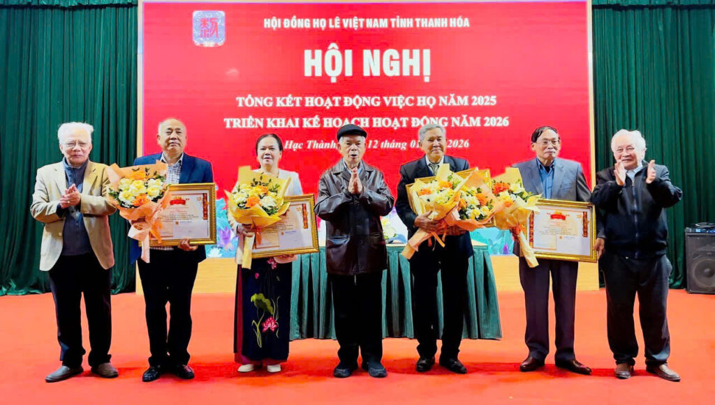 Trong hội nghị này, HĐHL Việt Nam đã vinh danh 1 tập thể là HĐHL khu vực Thọ Xuân và 2 cá nhân Ông Lê Công Thể Chủ tịch và ông Lê Năng Thắng Phó Chủ tịch HĐHL khu vực Thọ Xuân đã có thành tích đặc biệt Xuất sắc trong việc phục dựng Khu tưởng niệm Quốc mẫu Trịnh Thị Ngọc Thương – Thân mẫu Đức vua Lê Thái Tổ; Vinh danh Nhà giáo Ưu tú Lê Văn Hoành và bà Lê Hồng Sử đã có thành tích xuất sắc trong hoạt động việc họ năm 2025.