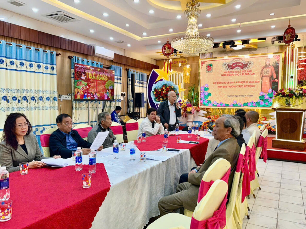 HLVN – Sáng ngày 10/01/2026,tại nhà khách Thắng Lợi số 03 Trần Phú phường Quy Nhơn, tỉnh Gia Lai, thường trực Hội đồng họ Lê tỉnh Gia Lai nhiệm kỳ 2025-2026, đã tổ chức họp thường trực Hội đồng mở rộng lần thứ nhất. Hội nghị triển khai chương trình công việc phát triển dòng tộc, trọng tâm là triển khai quy ước Hội đồng họ Lê Việt Nam phù hợp với bối cảnh đất nước; cũng cố công tác tổ chức để phát triển họ Lê cấp xã phường phù hợp với bối cảnh cụ thể. Trước cuộc họp thường trực đã tổ chức dâng hương nhà thờ và viếng hai phó chủ tịch hội đồng vừa qua đời.