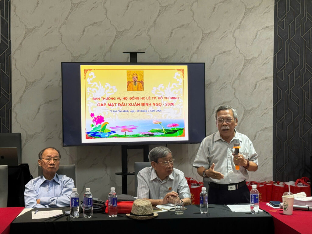 HLVN – Vừa qua, Hội động Họ Lê TP. Hồ Chí Minh đã tổ chức Hội nghị đầu năm để triển khai một số công việc từ nay đến hết tháng 6/2026. Tham dự hội nghị có ông Lê Duy Minh, Phó Chủ tịch HĐHL Việt Nam, nguyên Chủ tịch HĐHL TP. Hồ Chí Minh; ông Lê Ngọc Dậu Chủ tịch HĐHL TP. Hồ Chí Minh, cùng 20 vị trong Ban thường vụ HĐHL TP. Hồ Chí Minh. Trước khi triển khai công việc, ông Lê Ngọc Dậu đã quán triệt lại tôn chỉ, mục đích hoạt động của HĐHL Việt Nam.