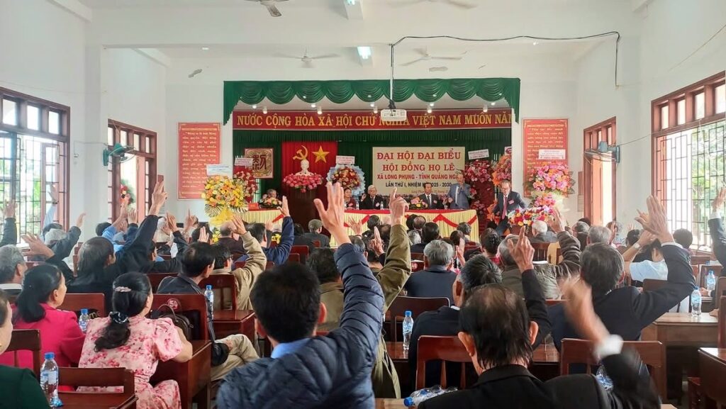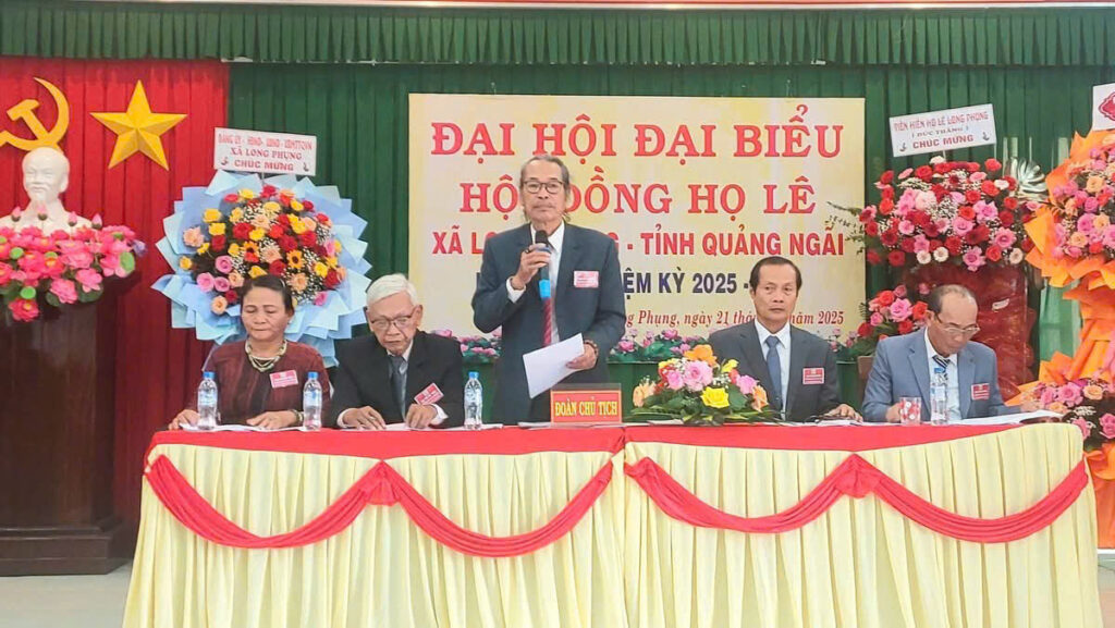 HLVN – Ngày 21/12/2025, Hội đồng Họ Lê xã Long Phụng, tỉnh Quảng Ngãi đã tổ chức thành công Đại hội đại biểu hội đồng Họ Lê xã lần thứ nhất, nhiệm kỳ 2025- 2030. Thường trực Hội đồng Họ Lê Việt Nam tỉnh Quảng Ngãi đã dự, chỉ đạo và tham gia tổ chức đại hội. Đại hội đã đón tiếp lãnh đạo Đảng ủy- Hội đồng nhân dân-Uỷ ban nhân dân xã Long Phụng cùng đại biểu Ban chấp hành Câu lạc bộ Doanh nhân họ Lê Việt Nam đã về dự.